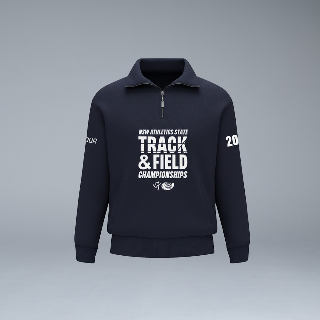 Show your state pride with the NSW Athletics 2026 State Track and Field Half Zip in navy – a premium, cozy essential for this season's carnival. Designed for maximum warmth and durability, this fleecy half zip is the perfect keepsake for athletes and supporters to remember the 2026 milestone.