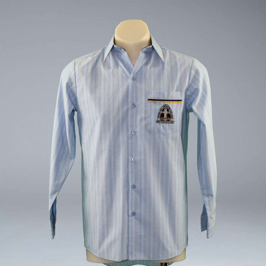- Long sleeve shirt with embroidery and contrast piping on front chest pocket