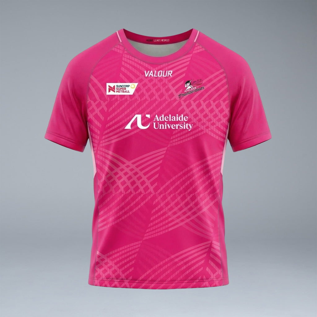 Official Team Branding: Displays the Adelaide University and Thunderbirds logos, along with sponsor detailing.